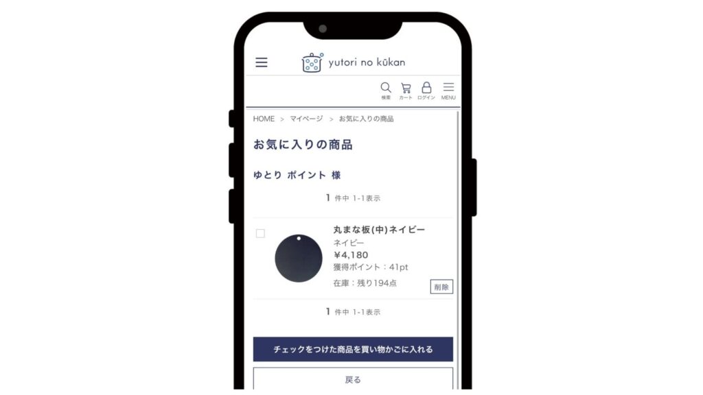 ログインした状態で「お気に入り」登録した商品は、アプリからもオンラインショップからも確認できます。