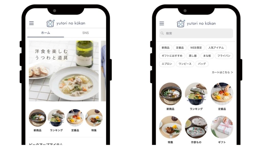 新商品や定番品といったカテゴリや、季節ごとの特集、現在人気の商品をランキング形式でチェックするなど、さまざまな切り口から商品との出会いを創出します。